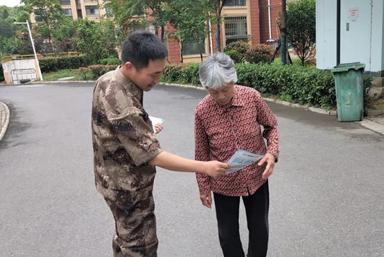 (圖為保衛(wèi)處黨支部在生活區(qū)向住戶宣傳防網絡詐騙知識)