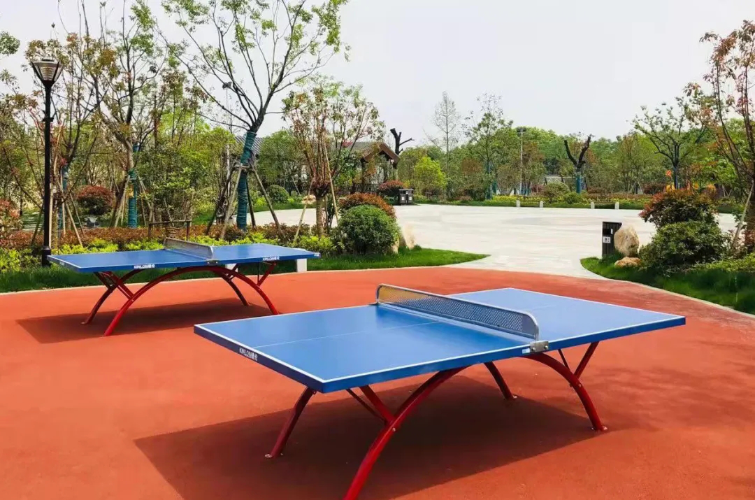 (圖為皖維西生活區(qū)桂花公園內新安裝的乒乓球臺)