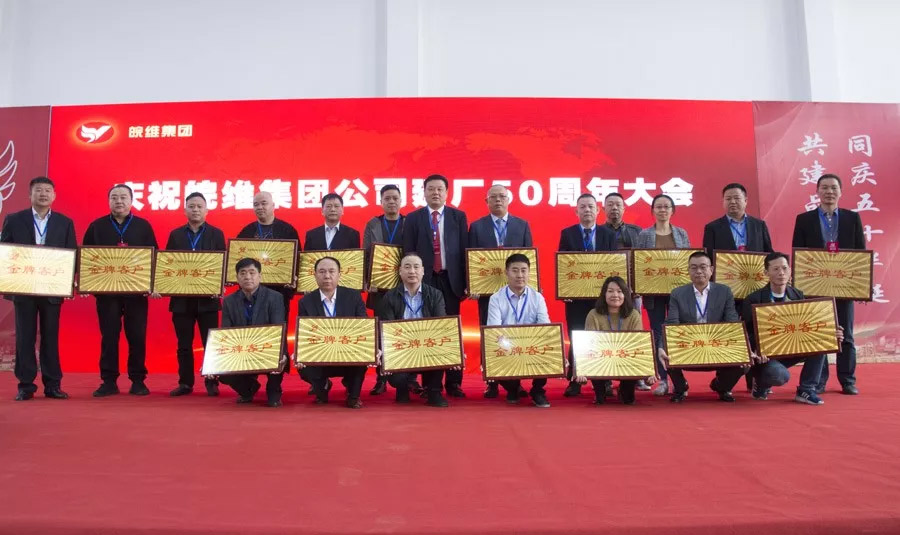 “金客戶”代表沈陽(yáng)蘊(yùn)恒國(guó)際貿(mào)易有限公司副董事長(zhǎng)王明明、福建福維股份有限公司董事長(zhǎng)魏平和、安徽長(zhǎng)風(fēng)融通貿(mào)易有限公司董事長(zhǎng)劉紹東、上海潤(rùn)蓬貿(mào)易有限公司董事長(zhǎng)朱峰、廣州閩維聚乙烯醇銷售公司董事長(zhǎng)張春好在大會(huì)上先后發(fā)言,熱烈祝賀皖維迎來(lái)建廠50年大慶,熱情稱頌皖維50年的發(fā)展壯大,真誠(chéng)贊譽(yù)皖維的產(chǎn)品與信譽(yù),由衷感嘆皖維的精神風(fēng)貌,表示更加堅(jiān)定信心和決心,與皖維建立共贏共榮的合作與發(fā)展關(guān)系,攜手共創(chuàng)更加美好的未來(lái)。