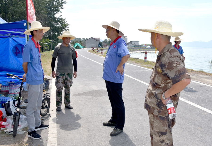 8月3日,驕陽似火,巢湖地區(qū)高溫度達(dá)36℃。在如此炎熱的天氣里,皖維防汛突擊隊員們的身體狀況讓公司導(dǎo)時刻記掛在心。這樣的高溫下,突擊隊員狀態(tài)怎么樣?隊員們有哪些實際需要?上班,張正和、吳霖、閆昌斌等導(dǎo)就驅(qū)車前往巢湖大堤,慰問防汛線的突擊隊員們。